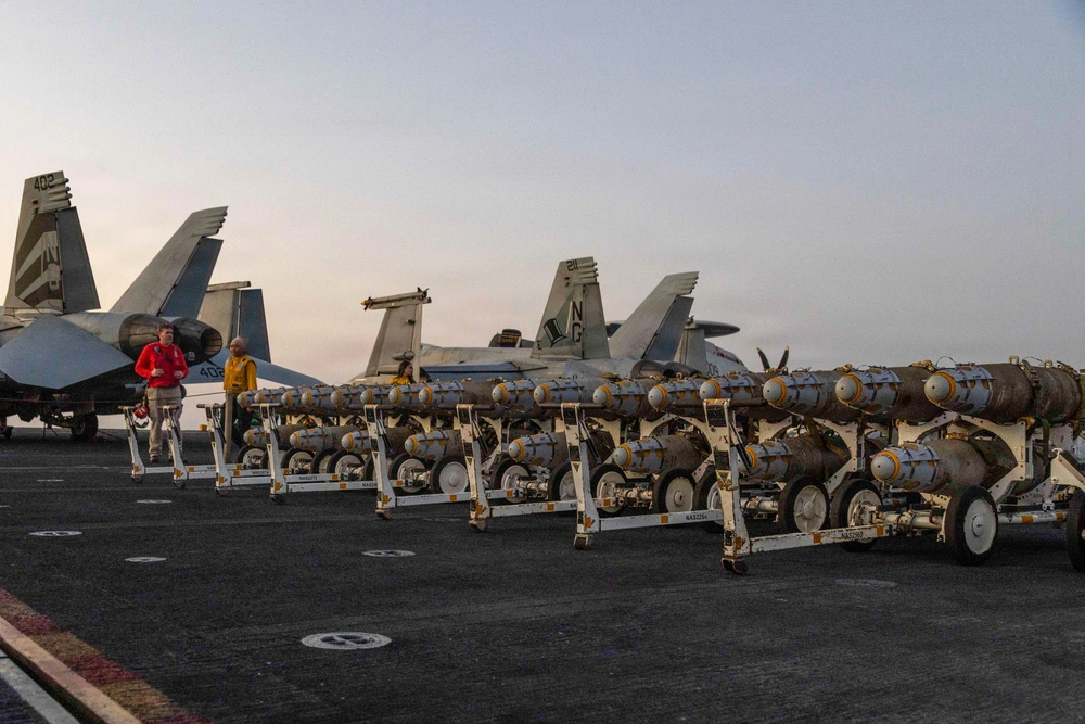 “More bombers, fighters are arriving just today. And now with complete control of the skies, we will be using 500-pound, 1000-pound, and 2000-pound GPS-and-laser-guided precision gravity bombs, which we have a nearly unlimited stockpile,” Hegseth said on Wednesday.