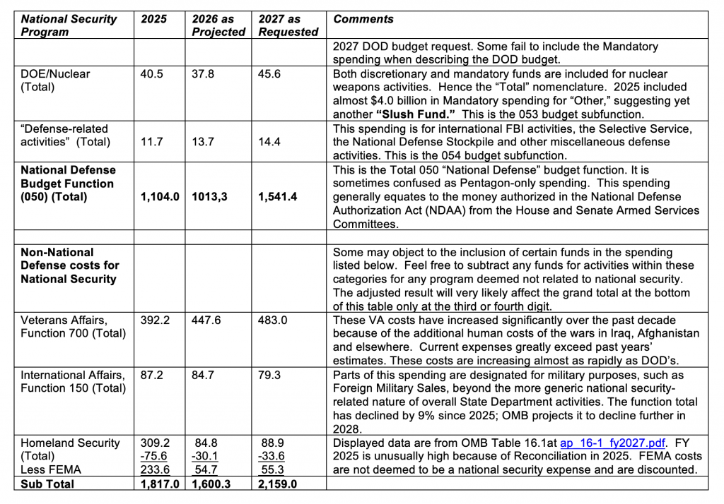 The true total of US national security spending in 2027 will exceed $2.5 trillion, far beyond the already record-shattering $1.5 trillion military budget President Trump has requested, according to veteran defense analyst Winslow Wheeler.