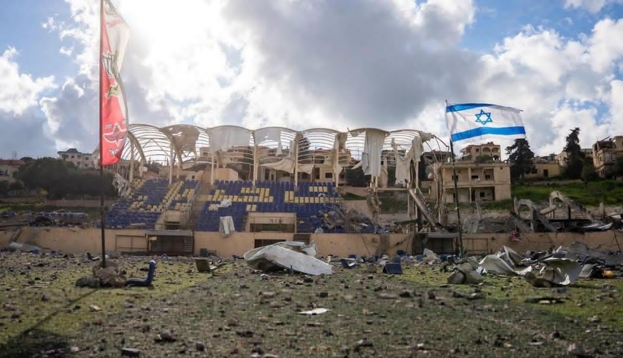 An Israeli flag flies amid the ruins of Bint Jbeil | Image from X